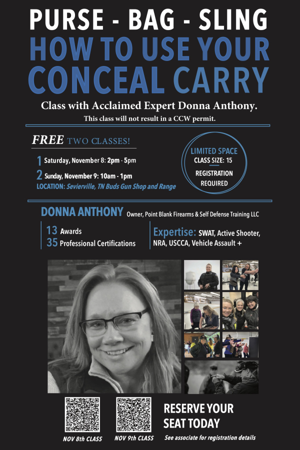 Buds Gun Shop recognizes the critical need for this course and is excited to collaborate with Anthony. Buds Gun Shop embraces the most favored carry option for women and the urgency to provide this class led by an industry expert.