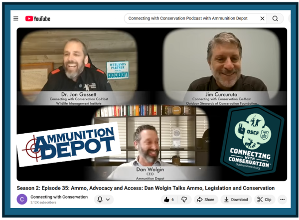 ROCK HILL, S.C. – October 14, 2025 – The Connecting with Conservation (CWC) Podcast is proud to welcome Ammunition Depot CEO Dan Wolgin as its latest guest. In this episode, Wolgin joins hosts Jon Gassett of Wildlife Management Institute and Jim Curcuruto of Outdoor Stewards of Conservation Foundation for an insightful discussion on how legislation impacts conservation, outdoor sporting and Second Amendment rights.