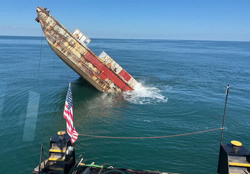 The steel-hulled vessel was thoroughly cleaned and inspected by the U.S. Coast Guard prior to deployment to ensure all hazardous materials and pollutants were removed. The barge now rests on the seafloor, where it will soon begin serving as essential fish habitat, providing shelter and structure for a wide variety of marine life, including snapper, grouper, sea bass, and other reef-associated species.