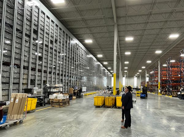Maddox showed off Silencer Central’s massive new Opex order fulfillment system. That three story wall on the left is part of a huge enclosed system that holds about 170,000 suppressors. It robotically fills orders by picking specific suppressors by reading their serial numbers.