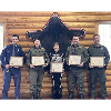 Five individuals including Michigan DNR Conservation Officers Jennifer Lehto and Zach Painter, Michigan State Police Trooper Paul Maxinoski, Great Lakes Indian Fish and Wildlife Commission Capt. Steve Amsler, and Susan Barrette received awards for their heroic rescue of an angler who broke through Lake Gogebic ice in March 2024.