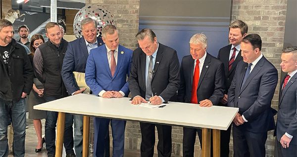 South Dakota Governor Larry Rhoden speaking at a signing ceremony at Silencer Central’s headquarters in Sioux Falls. Photo: Dan Zimmerman