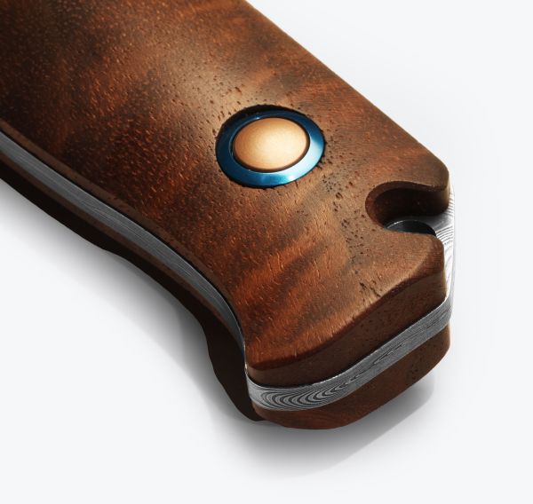 Unlike traditional single-steel blades, the Codex87 Horizon Edge™ introduces a fused bi-metal construction, in which the base blade steel Hakkapella™ Damasteel®, is combined with a separate steel, Rex121, applied specifically along the cutting edge. Benchmade’s patented blade design uses a laser to fuse a secondary alloy powder along the edge of the blade. This process creates one unified blade that behaves as a single structure while delivering two distinct performance advantages.