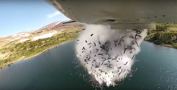 Stocking high country lakes with trout via air drops has been going on for decades in many states, creating unique fisheries in some of the nation’s most beautiful areas. (Utah DNR)