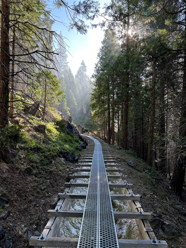 Well into year two of the 10-year project, the Stanislaus National Forest has already completed treatment on more than 15,000 acres. Of those acres, nearly 350 within 0.25 mile of the flume system directly protect the critical infrastructure. Most recently, fire crews reduced flammable vegetation surrounding portions of the system with a series of prescribed burn operations in the South Fork in early June of this year.