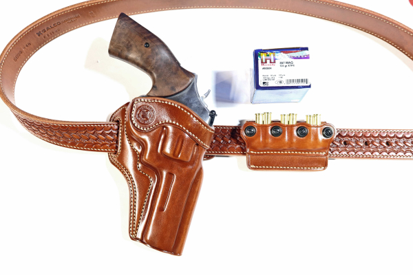 At 35 ounces, its weight class is more M19 Combat Magnum territory than the classic underlugged M686 “Distinguished Combat Magnum.” Built for carry, it’s ideal in a belt holster, like the Galco Masterbilt Revenger Belt Holster.