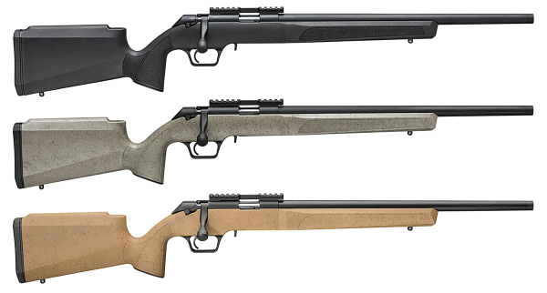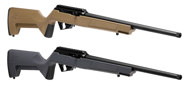The Target models come with either a Black, Coyote with Black Webbing, OD Green with Black Webbing, or Sage with Black Webbing reinforced synthetic stock (LOP of 13.45”) with a free-floated 20” Heavy Profile barrel with 1/2x28 threads for muzzle attachments. The 2020 Rimfire also features an accuracy guarantee of 1” or less at 50 yards…assuming you do your job and use quality ammo. Best of all, its 10-round magazine is cross compatible with that of the Ruger 10/22.