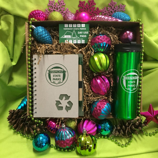 For $59, this gift package is a ticket to several weekends of adventures. The package contains punch card good for 10 state park day visits, a notebook and pen set, and a Vermont State Parks travel mug.