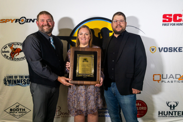 Lincoln, Neb. (Oct. 10, 2025) ---The Association of Great Lakes Outdoor Writers (AGLOW) presented its prestigious Golden Glow Organization Award to River Bend Resort and owners Paul and Brandi Johnson. The honor recognizes diverse and wide-reaching accomplishments in the field of outdoor communication.