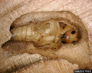 Wood borers “Wood borer” is a general term for beetles that lay eggs on or in the bark of trees. When eggs hatch, these insects spend their larval stages tunneling into and feeding on wood, destroying tissues that move sap and water through the tree. Many wood borers are native and seek out weakened trees. Others, such as invasive emerald ash borer and the Asian longhorned beetle (found in nearby states), infest healthy trees and cause their decline and death. Wood borer eggs and larvae can remain in wood after trees die. Because they often are under bark or within the wood itself, they can go unnoticed until they emerge as adults. A Michigan study of 1,045 firewood pieces transported by the public indicated 23% contained live borers and an additional 41% showed evidence of previous borer infestation. |