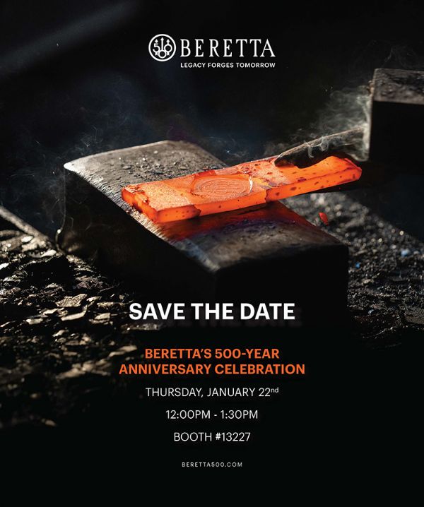The celebration continues on the show floor. On Thursday, January 22nd, Beretta will host an in-booth anniversary celebration at Booth #13227 starting at noon featuring guest speakers, the unveiling of a special 500-year commemorative creation, and a cocktail reception with passed hors d'oeuvres. Industry partners are invited to join Beretta for an hour to recognize five centuries of innovation, craftsmanship, and performance.