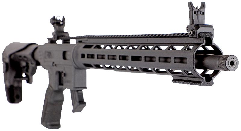 The TM22 Flash combines modern tactical elements with proven reliability, featuring an 18" rifled target barrel for accuracy, a full top rail with flip-up sights for quick optic integration, M-LOK forend and bottom Picatinny rail for accessories, an adjustable collapsible stock with cheek riser on a commercial buffer tube (13-14.5" length of pull), AR pistol grip, and flat-faced trigger for rapid follow-ups. At just 4.85 lbs unloaded and 34" overall, it's built for all-day recreational use. The rifle includes two 10-round polymer magazines and is fully compatible with aftermarket 15-round and 25-round magazines for extended sessions. With complete in-house vertical integration, every component is manufactured to ensure quality, durability, and value.
