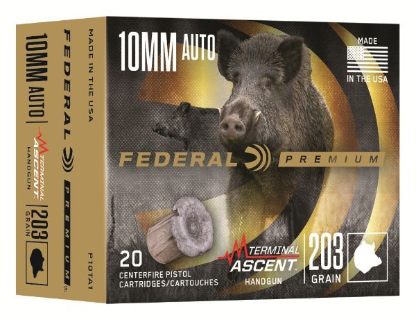Federal Ammunition has announced its new Terminal Ascent Handgun ammunition line, built to deliver excellent accuracy and terminal performance for hunters who carry a handgun into the field. The three new handgun-hunting rounds feature a bonded, nickel-plated bullet design to increase weight retention, while a unique elastomer-filled nose cavity reliably expands. The new loads include 10mm Auto 203-grain, 357 Mag. 157-grain, and 44 Rem. Mag. 235-grain.