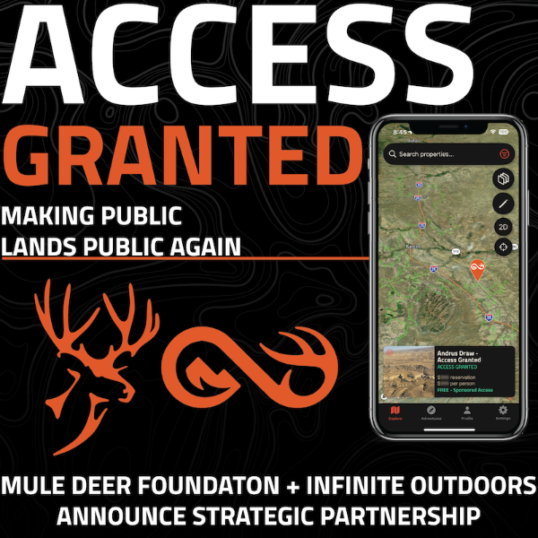 The Mule Deer Foundation (MDF) is proud to announce an official partnership with the technology-driven outdoor access platform, Infinite Outdoors. Under this partnership, the organizations will work collaboratively to advance conservation efforts and strengthen outdoor recreation opportunities for hunters, wildlife enthusiasts, and landowners nationwide.