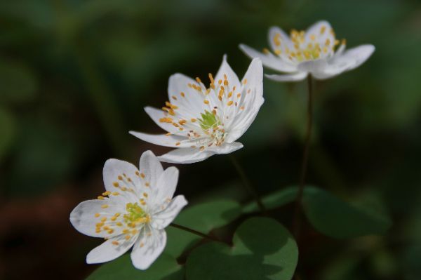 In 2022, the eastern meadowlark (photo by Tyler Pockette) was listed as threatened and the rue anemone wildflower (photo by Warren Bielenberg/Great Smokey Mountain National Park) was listed as endangered. Both species will benefit from Nongame Wildlife Fund tax checkoff donations.