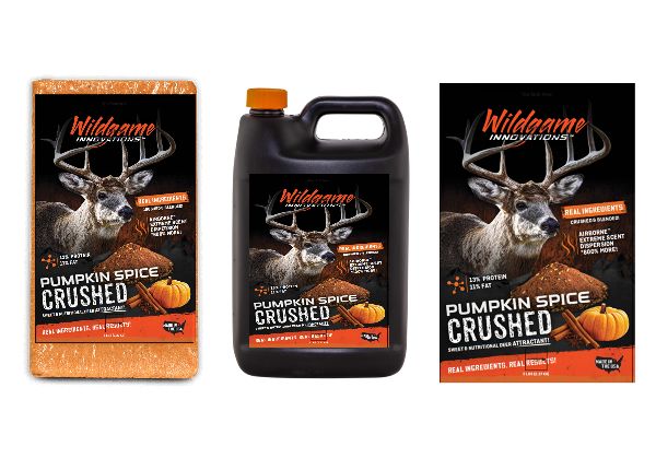 Developed using a proprietary double-screening process to create an ultra-fine powder that absorbs and releases up to 600% more scent molecules than ordinary mixes, the brand's all-new line of Crushed Pumpkin Spice attractants combines pure pumpkin and cinnamon scents that draw deer on a rope.