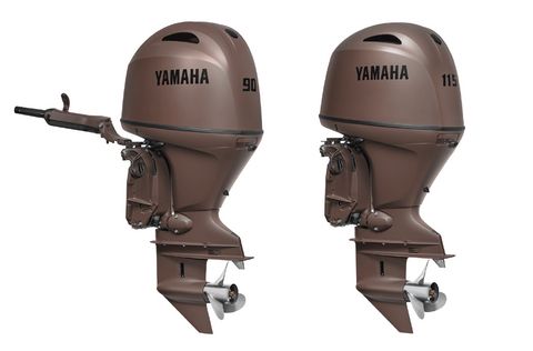 Yamaha extends the matte brown color into the F90 and F115 outboard family to offer a less reflective, earth-tone finish, giving boaters even more ways to customize the look of their boats. Desired by waterfowl hunters and camouflage enthusiasts alike, the low sheen of Yamaha's matte brown outboard provides better concealment, giving hunters the edge, while the tone and shade of the matte brown also make this color an excellent base layer for tailored camouflaging without the need to sand or prime.