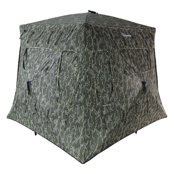 This year, the brand introduces the Frontline Wide-Bottom Extreme, a hub-style blind providing a spacious footprint that comfortably accommodates up to three hunters and enhances both concealment and visibility. Six silent sliding windows with Extreme View mesh, including four bowhunter-specific windows offering a wide 180° view, keep sightlines broad, while inside, a ShadowGuard™ coating reduces silhouettes, helping human presence stay undetected. Finished with a rugged 300-denier matte-finish shell in Mossy Oak Bottomland camo and topped with a 100% waterproof roof, it's built to withstand whatever is thrown at it.