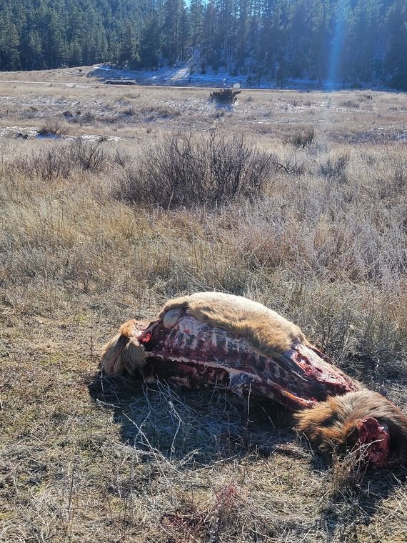 FWP Region 7 Warden Kyle Queer is investigating the poaching of a bull that was shot from the road on forest land southwest of Broadus in Powder River County. Warden Queer believes the bull was shot the evening of Feb. 21. The animal's head, backstraps and all four quarters were taken.