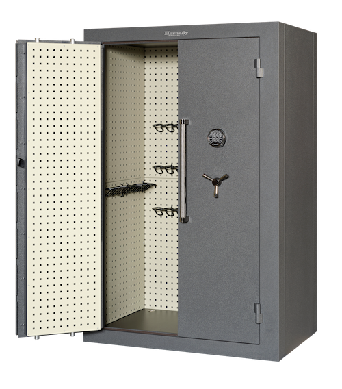 Designed for users with a larger collection of firearms, the Mobilis Safe Double Door provides enhanced storage capacity without compromising security. This safe offers ample storage with exterior dimensions of 34"W x 59"H x 25"D.