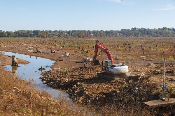 Lake Conway has nearly reached the halfway point of its scheduled five-year renovation project that includes replacement of the lake's outdated dam and water-control structure. In addition to critical enhancements to infrastructure, AGFC staff are working to improve valuable aquatic habitat on the aging lake. Gravel beds have been added throughout the lake to improve spawning habitat, and various forms of complex artificial cover have been placed in key areas of the lakebed during the drawdown.