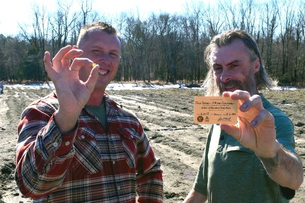 MURFREESBORO, Ark. – Jack Pearadin, 35, of Nashville, Ark., and Michael Schumacher, 43, of Soldiers Grove, Wis., have visited Arkansas' Crater of Diamonds State Park countless times over the years and have found many diamonds. However, a routine livestreamed gem search on Sunday, January 25 resulted in an historic find that shocked the two friends.