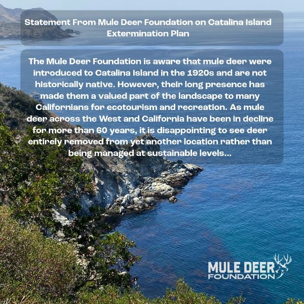 The Mule Deer Foundation (MDF) has released a statement on the following legislation passed for exterminating mule deer on Catalina Island in California: