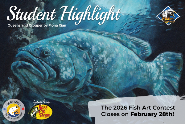 Hosted by Wildlife Forever, the free international contest invites youth to dive into science, art, and conservation by exploring fish species and aquatic habitats through original artwork and creative writing. Open to students in kindergarten through 12th grade, the Fish Art Contest continues to inspire curiosity, creativity, and environmental stewardship.