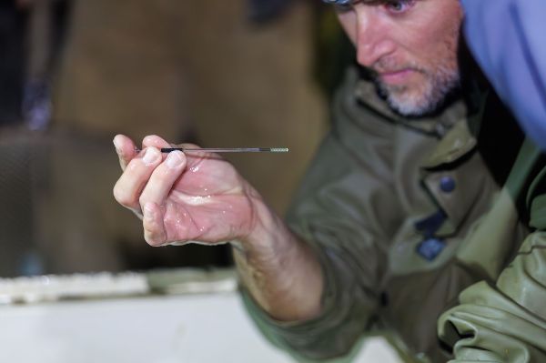 Newman's team also takes fin clips of the males and females caught for genetic study.