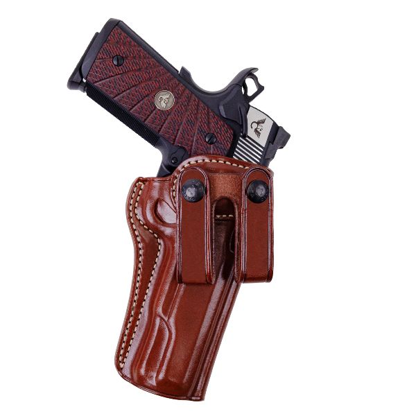 Comfortable and convenient, the Summer Comfort features a snap-on design that allows the holster to attach and detach from the belt without removing the belt. Reinforced premium steerhide construction retains its shape when the handgun is removed, allowing smooth and easy return to the holster. The smooth-out leather construction rides comfortably against the body, and features full firing grip clearance for a quick and sure draw. It's supplied with removable belt loops fitting belts up to 1 3/4", with optional tan and black 1 1/4", 1 1/2", and 1 3/4" belt loops available.