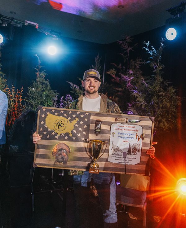 Claiming the victory is no small accomplishment. Wallis advanced through a highly competitive field made up of the top turkey callers in the nation. He then went on to deliver an outstanding performance in front of a packed audience to take the title as Senior Open Champion - the most prestigious championship in turkey calling.