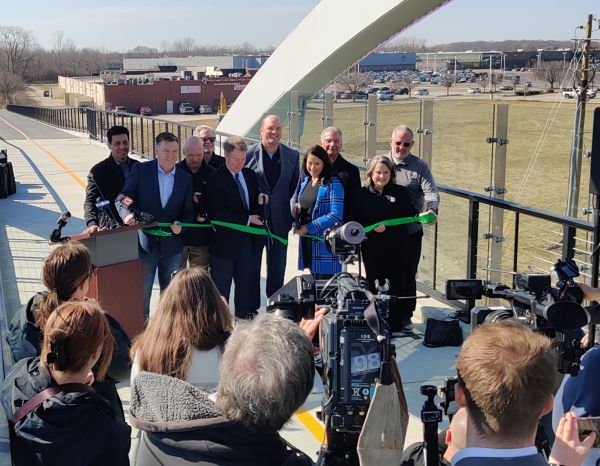 The Indiana Department of Natural Resources (DNR) and the city of Fishers celebrated the opening of an extension to the Nickle Plate Trail today, which includes a pedestrian bridge over 96th Street connecting to Indianapolis.
