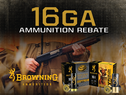 The Browning 16 gauge ammunition rebate is live now through May 31, 2026. The rebate includes Browning Golden Clays and BXD Upland 16 gauge ammunition providing savings of $2 per box or up to $100.