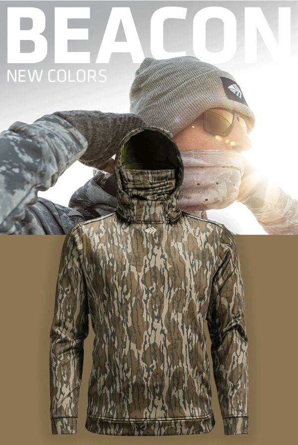 Whitewater is expanding its popular Beacon Technical Hoodie lineup to include two of the most iconic patterns in the heritage of the sportsman: Vintage Duck Camo and Mossy Oak® Bottomland®.