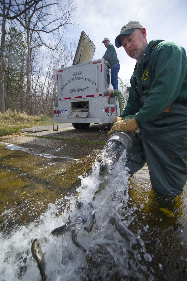 Fish stocking trucks are hitting the road! It's a busy season: This time of year, Michigan Department of Natural Resources fish stocking trucks are releasing their prized cargo — trout, salmon, muskie and walleye — at hundreds of lakes and streams statewide.
