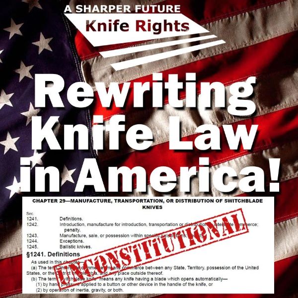 Right now we have a once-in-a-generation opportunity to gut the Federal Switchblade Act. The government is fighting back hard in all three of our Federal cases. Whether it's $25, $250, $2,500, or whatever you can afford today, every dollar goes directly to the legal fight. Your contribution to the 501(c)(3) Knife Rights Foundation is tax-deductible. Please support our efforts to defend your Knife Rights Rights.