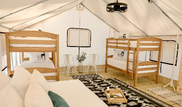 Perfect for families, couples and friend groups, glamping delivers all the magic of camping β crackling campfires, star-filled skies and peaceful mornings in the great outdoors β paired with the comforts of home. Each beautifully appointed tent includes real beds with fresh linens, electricity and climate control to keep you cool in the summer and cozy on crisp evenings.
