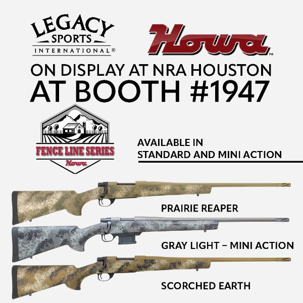 The New HOWA FENCE LINE Series featuring models in both the standard and mini action lineup are now shipping. There will be 3 coating offerings featuring – Scorched Earth, Gray Light and Prairie Reaper – all complimented with Cerakoted barrels that are threaded and with Cerakoted muzzle brakes as well. Short Action and Long Action standard and magnum calibers available including the new 25 Creedmoor offering from Howa. Additionally the 3 coating offerings will be available in the very popular Howa mini action models with 22" standard and 20" light varmint barrel options and providing the absolute top sellers like 22 ARC, 6mm ARC, 6.5 Grendel, 7.62x39.
