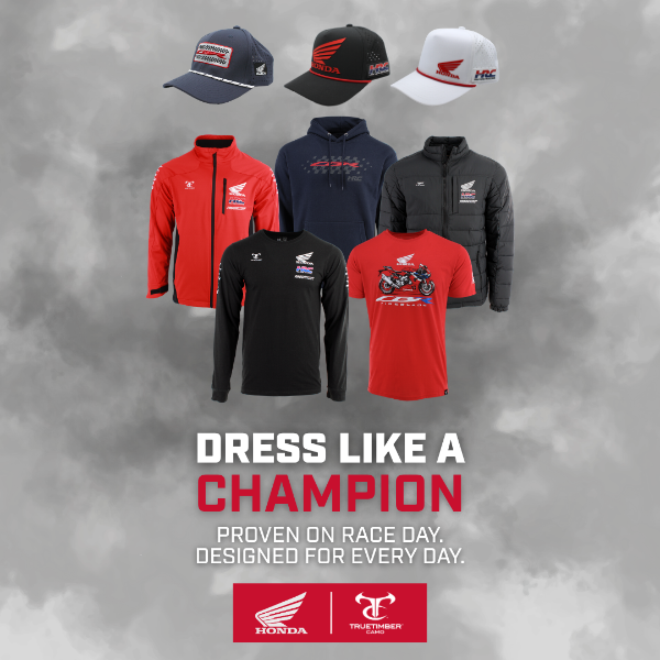 The new collection features officially licensed apparel from Honda, Honda HRC Progressive and Honda Gold Wing, offering a range of shirts, outerwear, headwear and accessories designed for both dedicated riders and outdoor enthusiasts. The lineup includes both camo and non-camo options, blending TrueTimber's proven camouflage patterns with clean, everyday lifestyle designs.