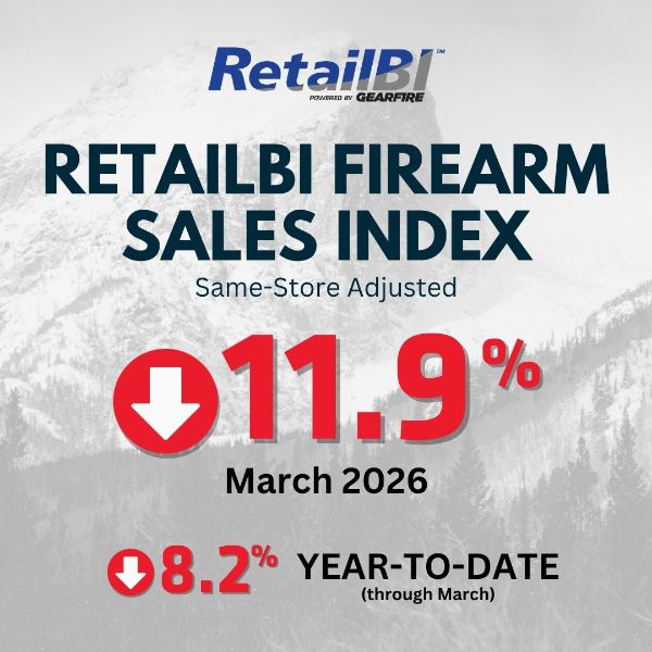 RetailBI has released its monthly RetailBI Firearm Sales Index, reporting a 11.9% year-over-year decline in March 2026 compared to March 2025 and a year-to-date decline of 8.2%.