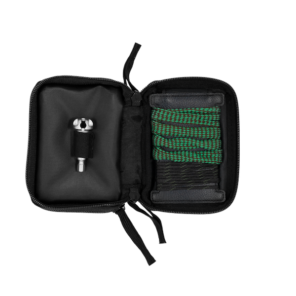 The zippered soft carrying case features two separate compartments, one for the molded-in wrench and bit holder that designed to hold any bit / accessory with a standard 1/4", and separate compartment for the Boresnake and the pull-through bore cleaner bit.