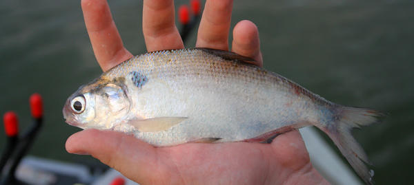 Gizzard shad present a challenge to managing small impoundments, which are designed to provide close-to-home fishing opportunities. While many anglers may recognize gizzard shad as a food source for sport fish, this mostly applies to large reservoirs where open-water fish such as walleye and wipers prey on shad. In smaller impoundments, open-water predators are rare or non-existent and gizzard shad populations can expand to levels that cause problems for more desirable sport fish. One example is direct competition for food resources between gizzard shad and young bluegill, which typically favors gizzard shad and causes a reduction in bluegill numbers. These changes can cause a chain reaction in the food web because bluegill are a preferred prey of sport fish like largemouth bass and white crappie. The result is an unsustainable sport fishery.
