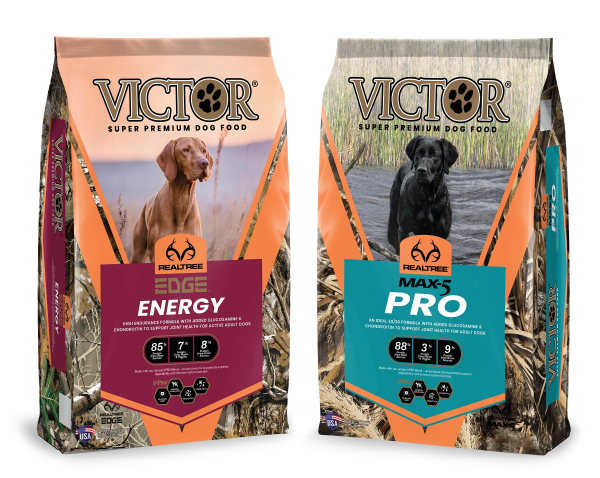 The two new VICTOR formulas — Realtree MAX-5 PRO and Realtree EDGE ENERGY — are formulated with added glucosamine and chondroitin to support active dogs’ hips and joints.