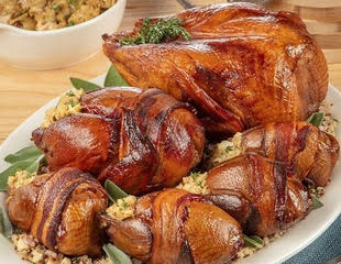 - Four Bacon Wrapped and Stuffed Smoked Quail 4-5 oz. each