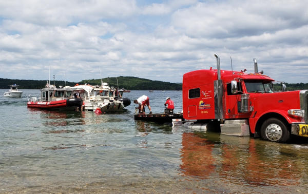 After the vessel was removed from the water, it was placed onto a flatbed trailer and will be taken under law enforcement escort to a secure location where the National Transportation Safety Board will take custody of it.