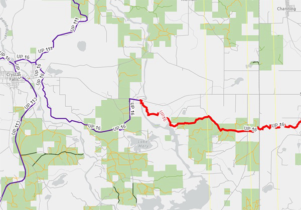 The Michigan Department of Natural Resources has closed a section of Snowmobile Trail UP16 in Iron and Dickinson counties, due to a change in private land access. The closure prevents a community trail connection between Crystal Falls and Sagola.