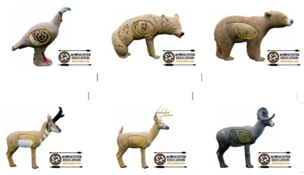 National Bowhunter Education Foundation (NBEF) developed lane markers to help keep National Archery in the Schools Program (NASP®) 3-D tournaments running smoothly and safely. Each strip includes 2”x3” floor stickers depicting each of the six 3D animals, in smallest to largest shooting order, and helping student identify the targets. The stickers are positioned on top of tape on the floor to indicate student’s shooting lanes and applicable target. The strips feature four-color artwork of a turkey, coyote, bear, antelope, whitetail and big horn sheep. NBEF sells the bundle of 3 strips for $10.