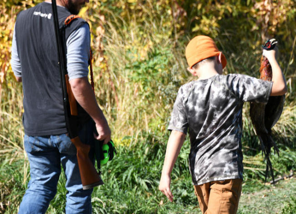 All upland game bird hunters are required to wear at least 36 squares inches of visible hunter orange above the waist during pheasant season.