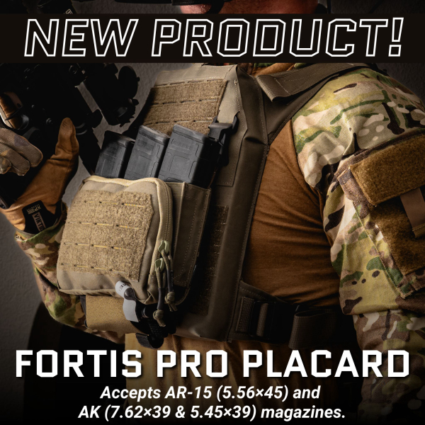 The Fortis Pro Placard (556/39) is available now in Ranger Green, Coyote Brown, and Black with an MSRP of $109.99 and is in stock and ready to ship.