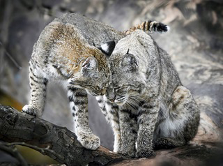 Griffin recalled how she captured the shot. She said the adult bobcat had just called the youngster to her to offer a fresh caught ground squirrel. The pair greeted each other on the limb of a felled tree before the youngster accepted the squirrel and disappeared into the wooded background.